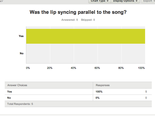 Here are the results from our survey on our music video, we decided to create a survey for our target audience to see how well are video was, and to see if it met their standards.